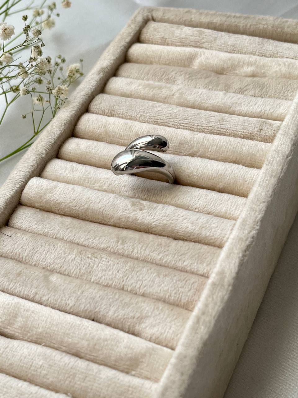 انگشتر قطره 2 آبکاری نقره،مینیمال شیک رنگ ثابت  .