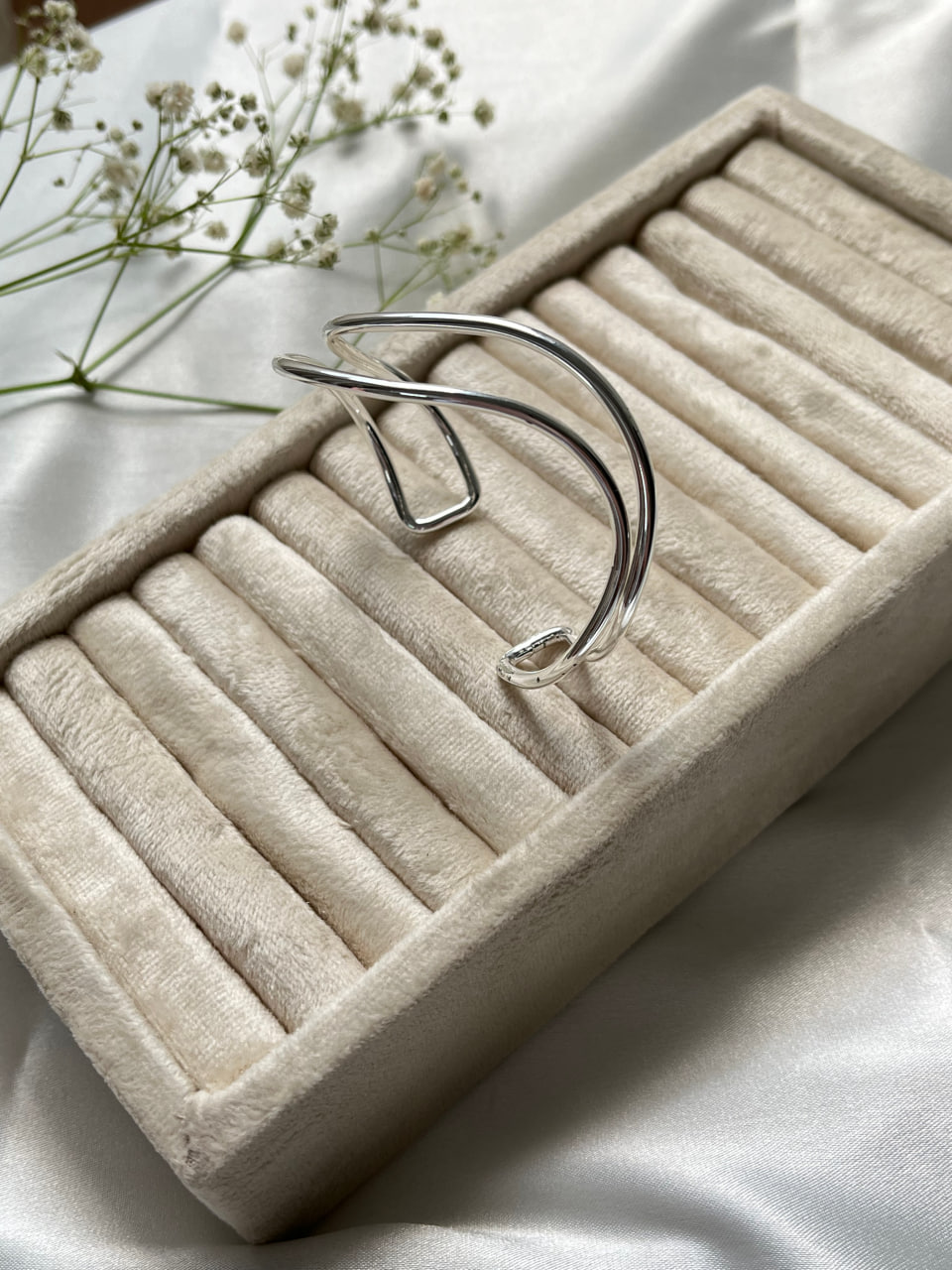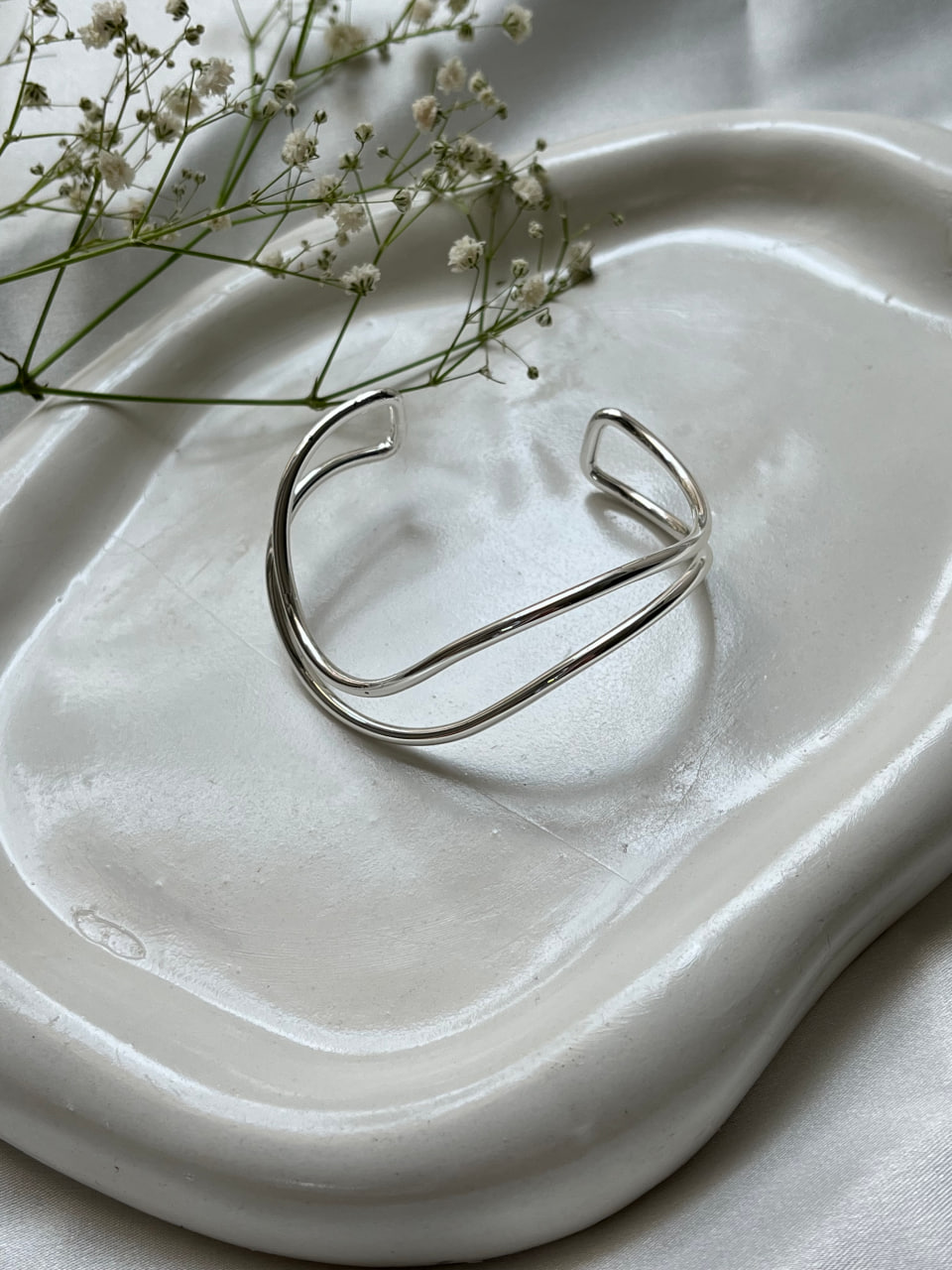 بنگل ساده هندسی آبکاری نقره،مینیمال شیک رنگ ثابت و فری سایز (قابلیت تنظیم سایز )