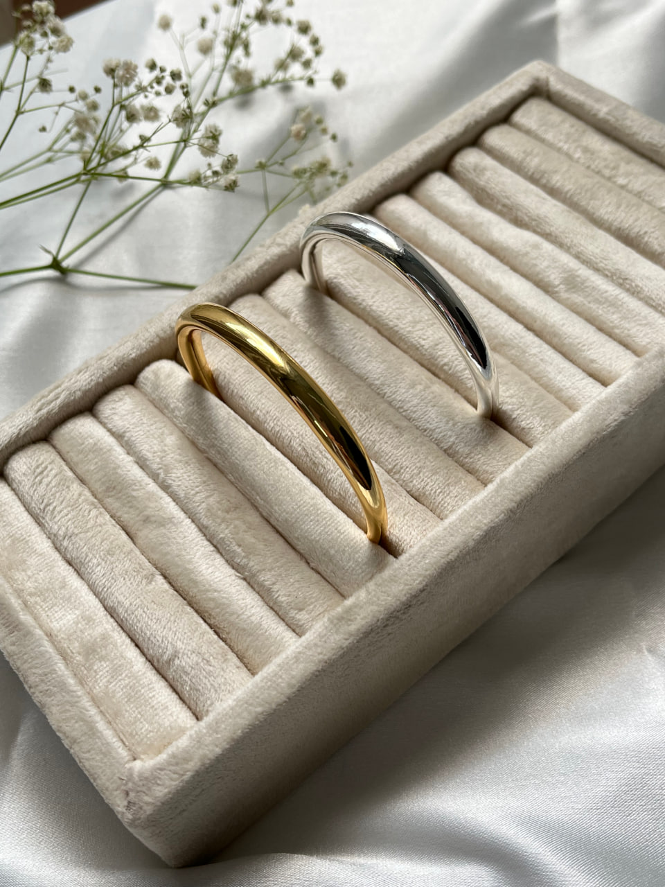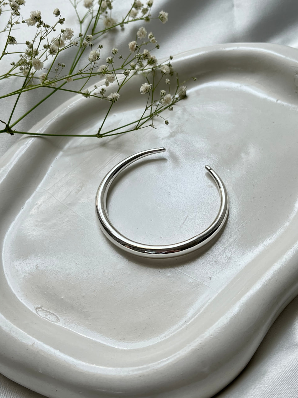 بنگل ساده گرد آبکاری نقره،مینیمال شیک رنگ ثابت و فری سایز (قابلیت تنظیم سایز )