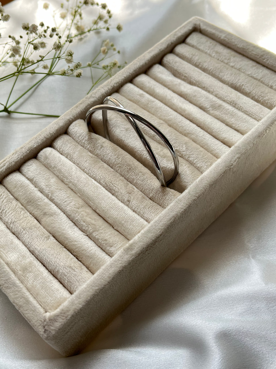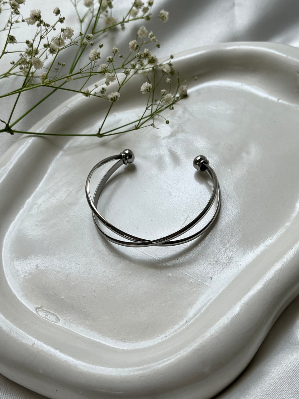 بنگل ضربدر آبکاری نقره،مینیمال شیک رنگ ثابت و فری سایز (قابلیت تنظیم سایز )