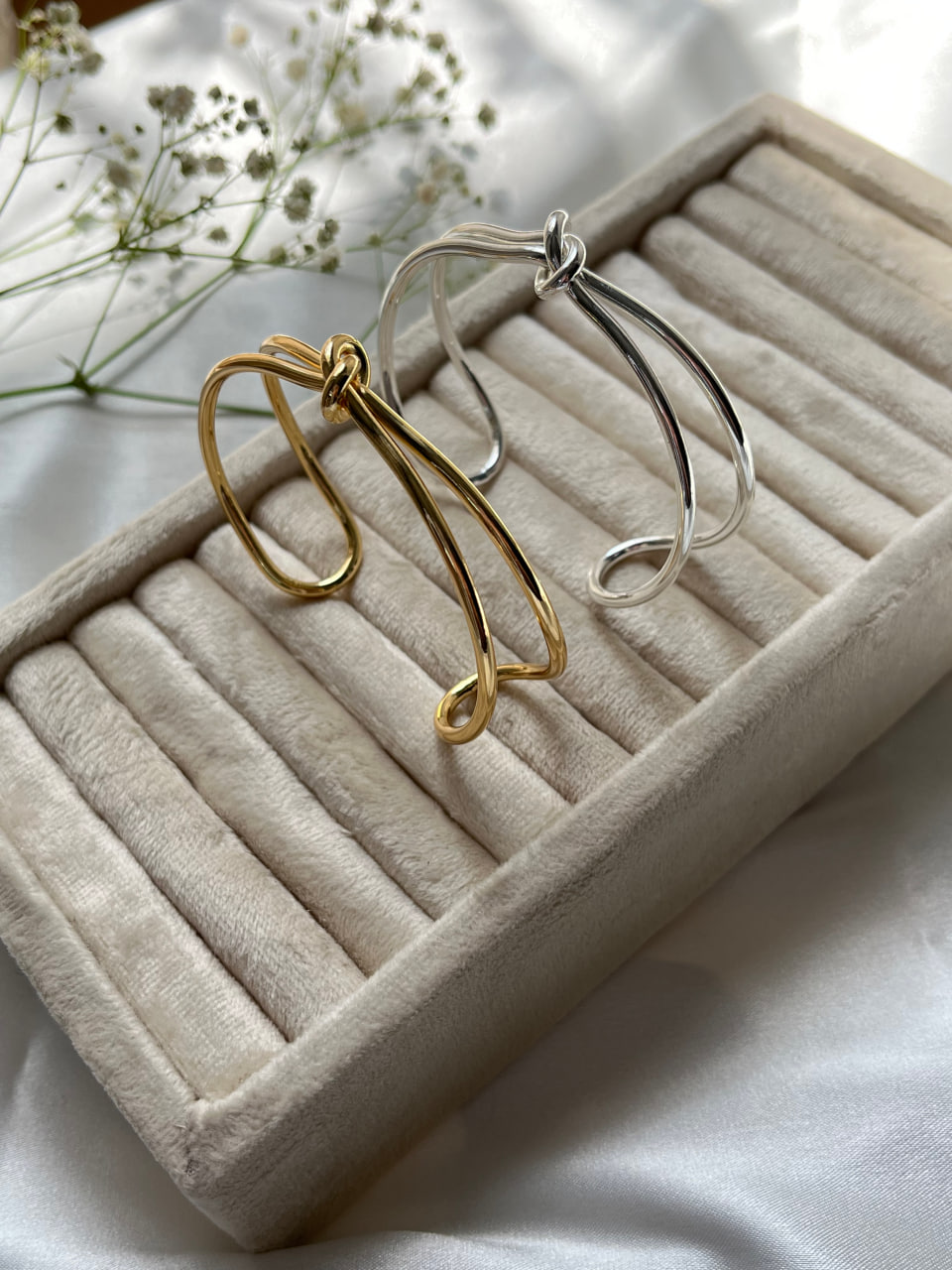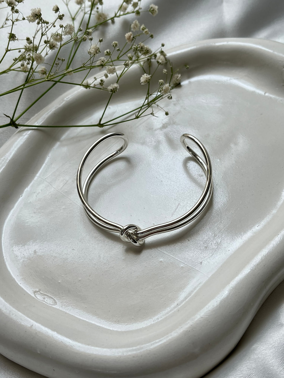 بنگل گره ساده آبکاری نقره،مینیمال شیک رنگ ثابت و فری سایز (قابلیت تنظیم سایز )