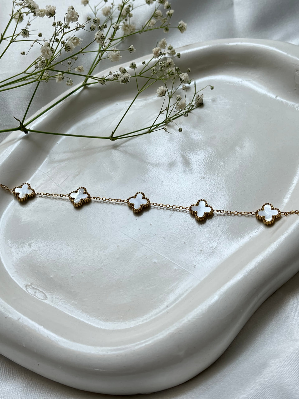 دستبند ونکلیف آبکاری نقره،مینیمال شیک رنگ ثابت .