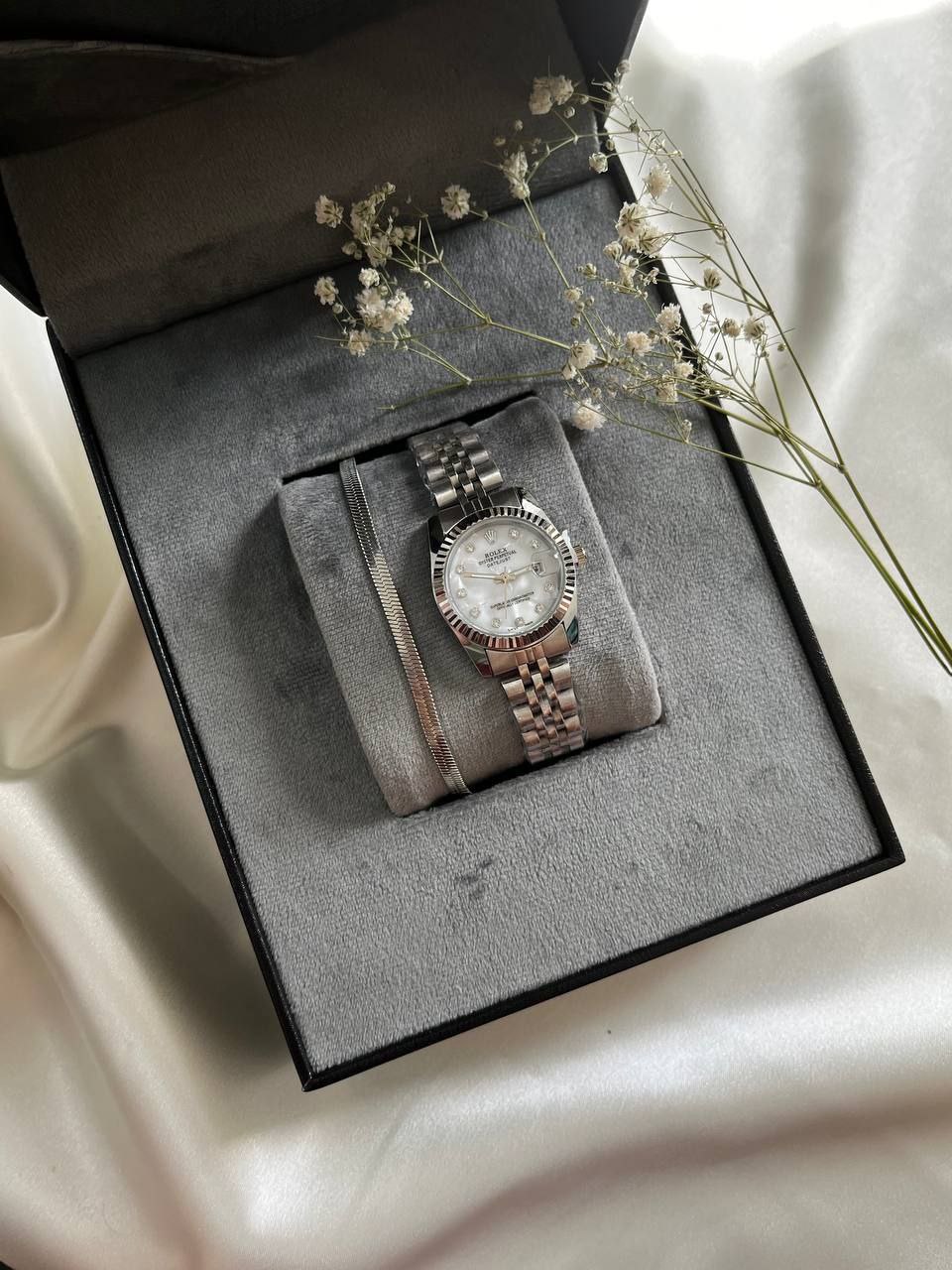 ساعتی با طراحی ظریف و الهامگرفته از برند لوکس رولکس، مناسب بانوانی که به استایل خاص و منحصربهفرد اهمیت میدهند. بدنهی استیل براق با رنگ ثابت، صفحهی کلاسیک و عقربههای دقیق، این ساعت را به انتخابی عالی برای استفاده روزمره یا مجالس تبدیل کرده است.