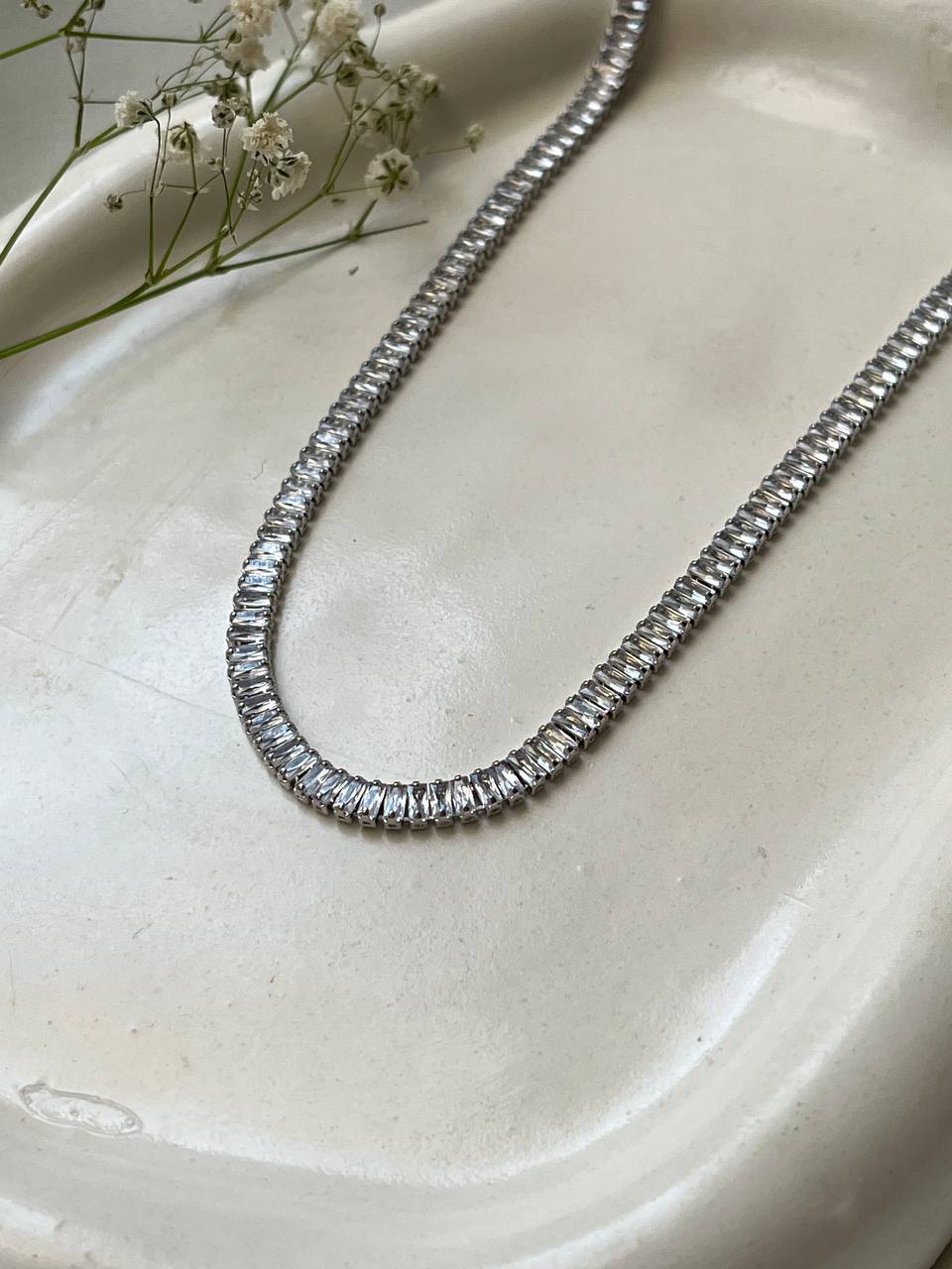 گردنبند تنیسی آبکاری نقره،مینیمال شیک رنگ ثابت .