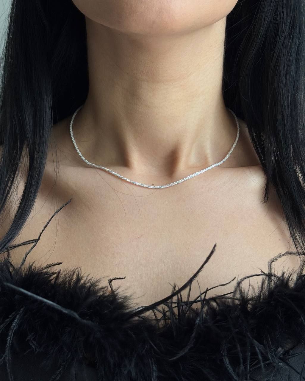 گردنبند زنانه آبکاری نقره،مینیمال شیک رنگ ثابت  .