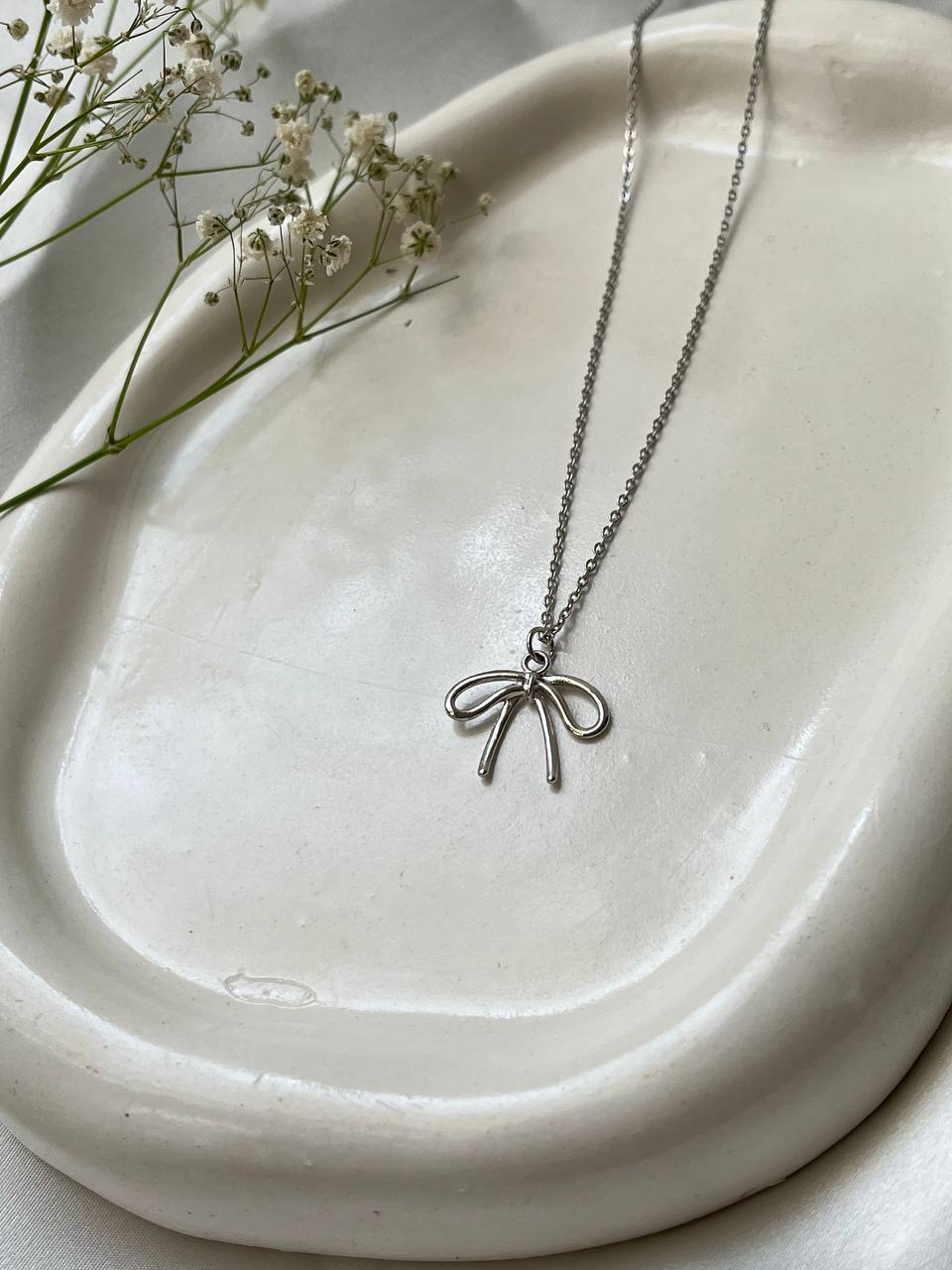 گردنبند پاپیون آبکاری نقره،مینیمال شیک رنگ ثابت .