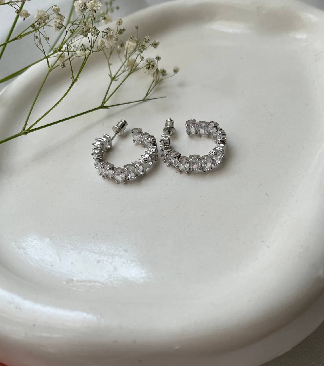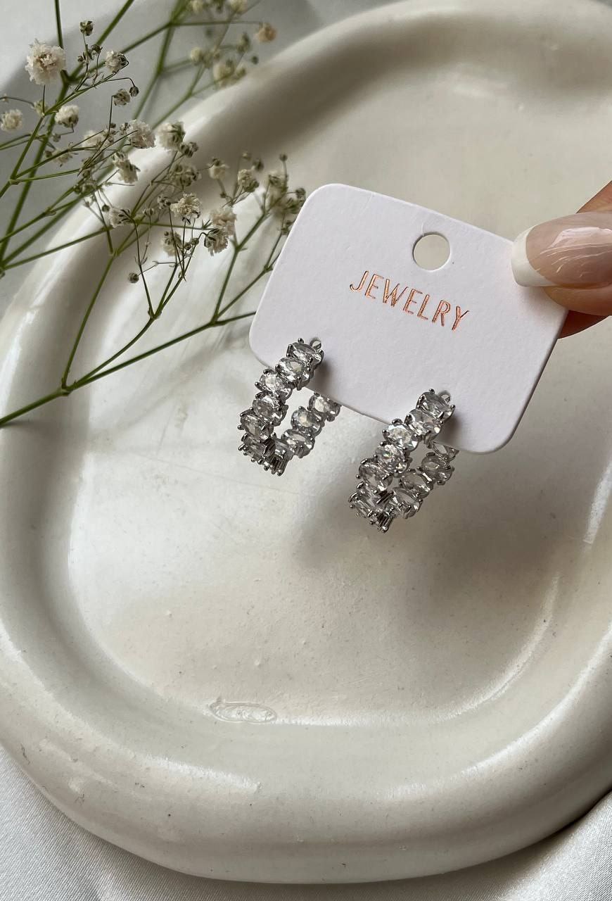 گوشواره طرح جواهر آبکاری نقره،مینیمال شیک رنگ ثابت و دارای میخ نقره ضد حساسیت .